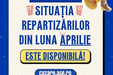 ‼️Situația repartizărilor pentru luna aprilie 2026 a fost publicată!‼️ REDISTRIBUIRI APRILIE REPARTIZĂRI STUDENȚI STRĂIN Ridicarea contractelor de cazare, a legitimațiilor și efectuarea cazării vor avea loc în perioada: 📅 30-31 martie 2026 🕒 Interval orar: 10:00–14:00, respectiv 15:00–19:00 📍 Locație: Serviciul Cazare Studenți – Str. Frumoasă nr. 31, Sala 13 Read more…